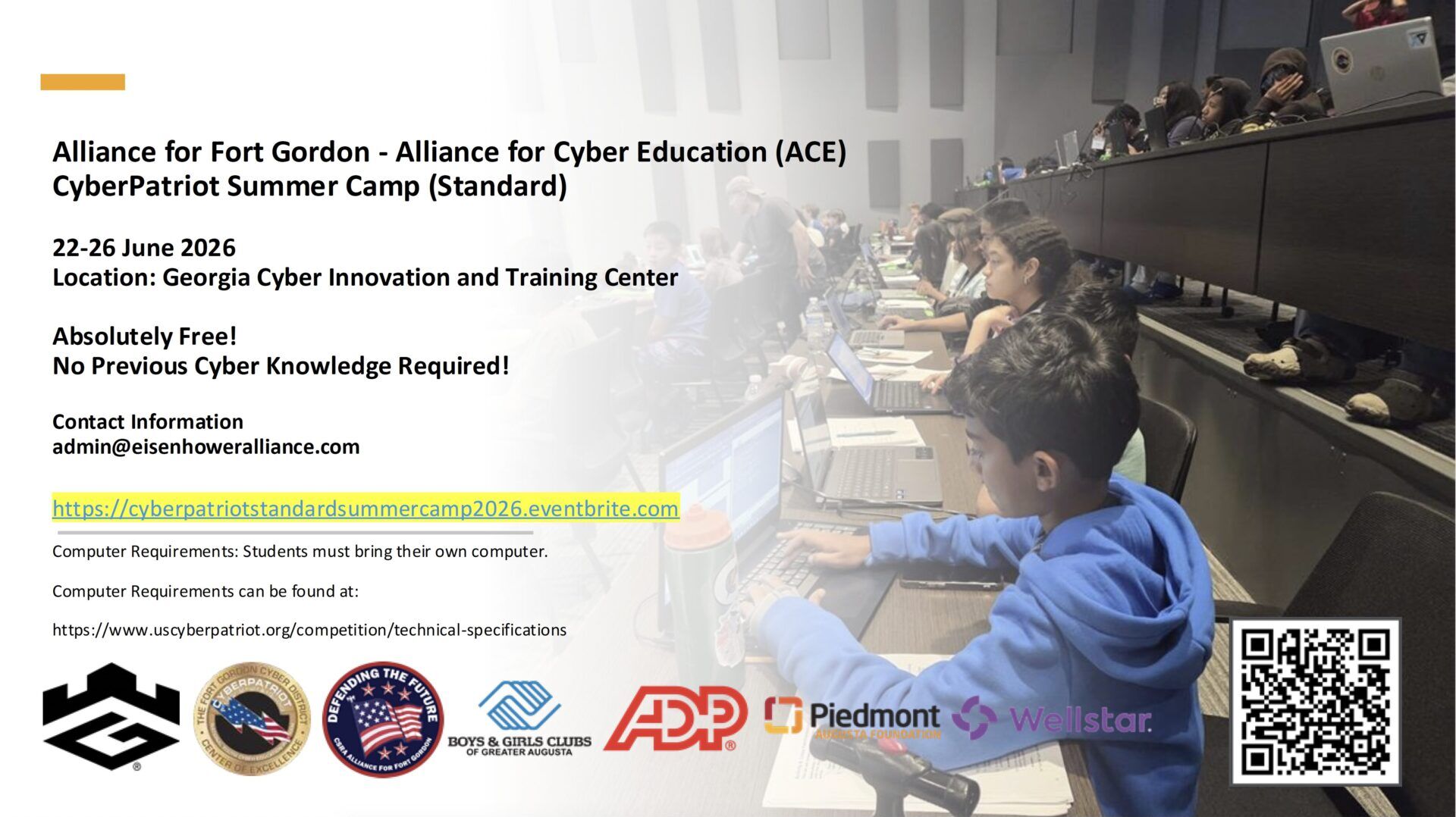 Fort Gordon Cyber District CyberPatriot program is a past recipient of the CyberPatriot Center of Excellence of the Year. The Air Force Association’s CyberPatriot Program Office made this announcement, making the Fort Gordon Cyber District the first back-to-back winners in the history of the award.